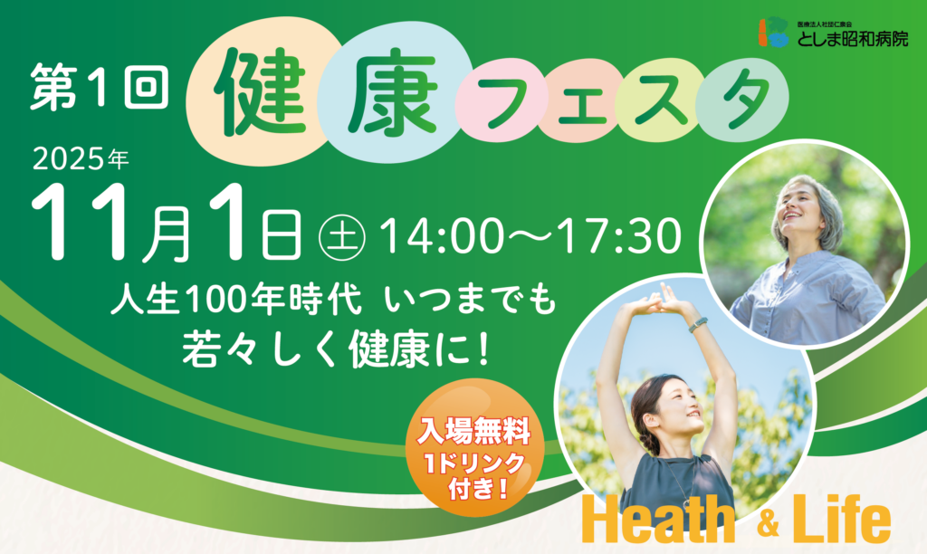 人生100年時代、いつまでも若々しく健康に!地域の皆様の健康を応援するため、としま昭和病院が主催する「第1回 健康フェスタ」を開催いたします。専門家による講演や、すぐに実践できる体操メソッドの体験を通して、今日から始められる健康習慣を一緒に見... -